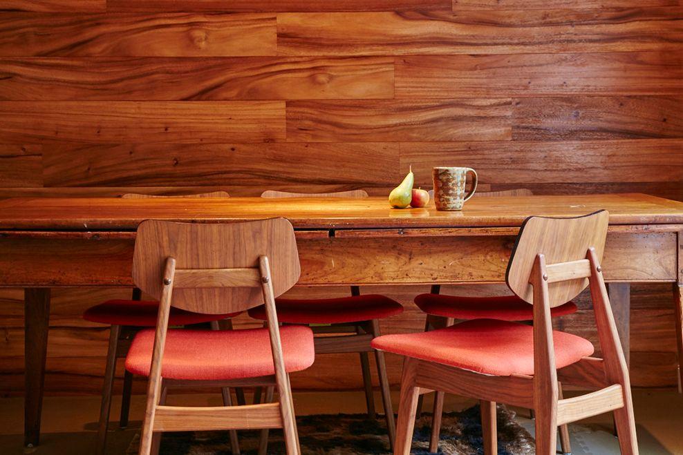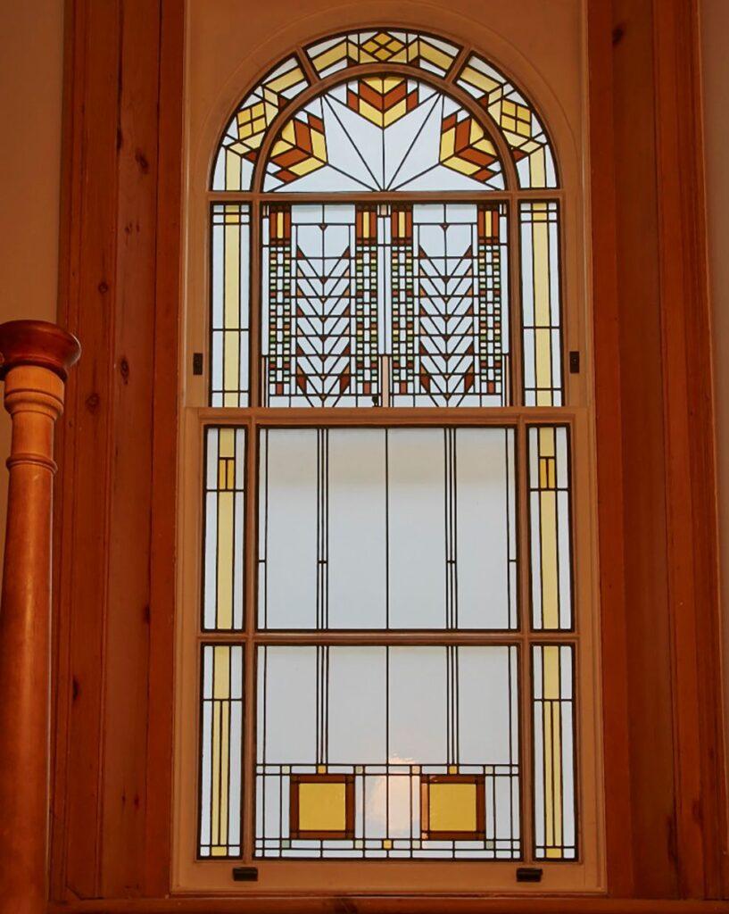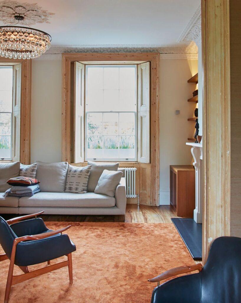 The client was also inspired by the work of Frank Lloyd Wright, so we created feature stained glass for the stairs area, to bring this into the home. We then mixed vintage furniture with modern pieces to create a luxurious but down to earth feel, using natural materials and textures to bring the rawness of nature within the home, as well as packing its stunning garden with shrubs and trees.