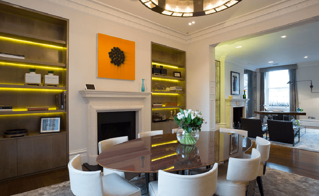 In the heart of Knightsbridge, Ennismore Gardens exudes luxury. We layered textures, from cool marble to polished woods to the softest of deep pile carpets. The home is packed with modern, urban touches, from statement furniture pieces to exciting lighting to a temperature-controlled wine room – everything a well-to-do Londoner could possibly desire.
