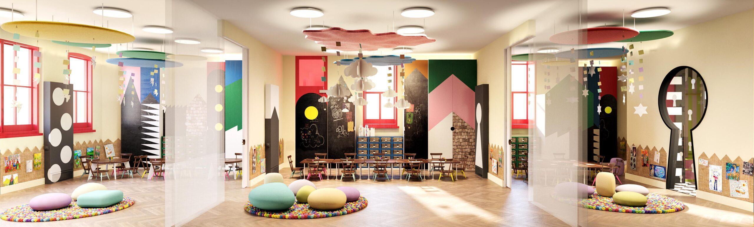 We’ve used patterns to energise the young pupils’ senses, taking them beyond the physical space on a flight of fancy. It’s a magical land that children can’t wait to enter.