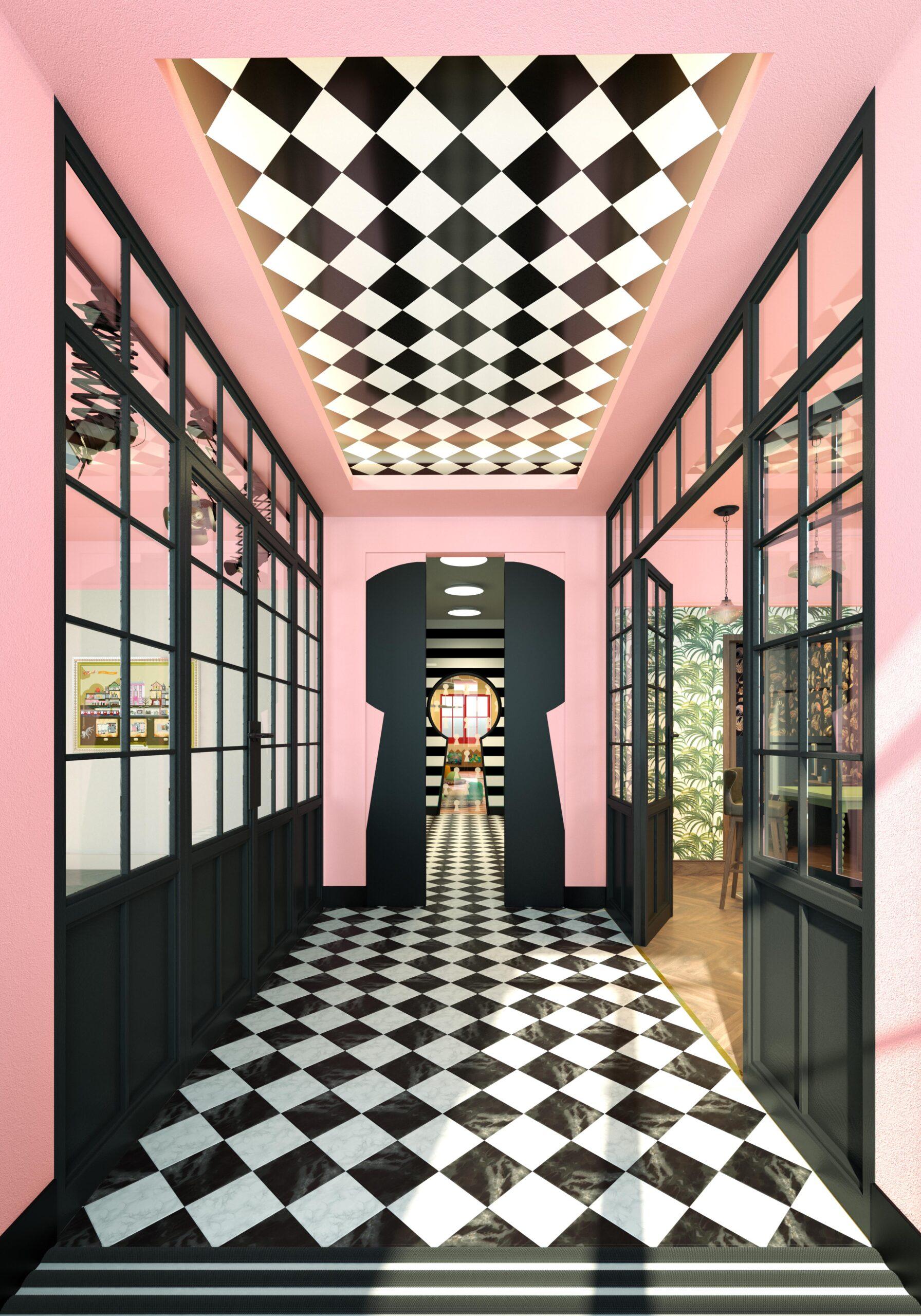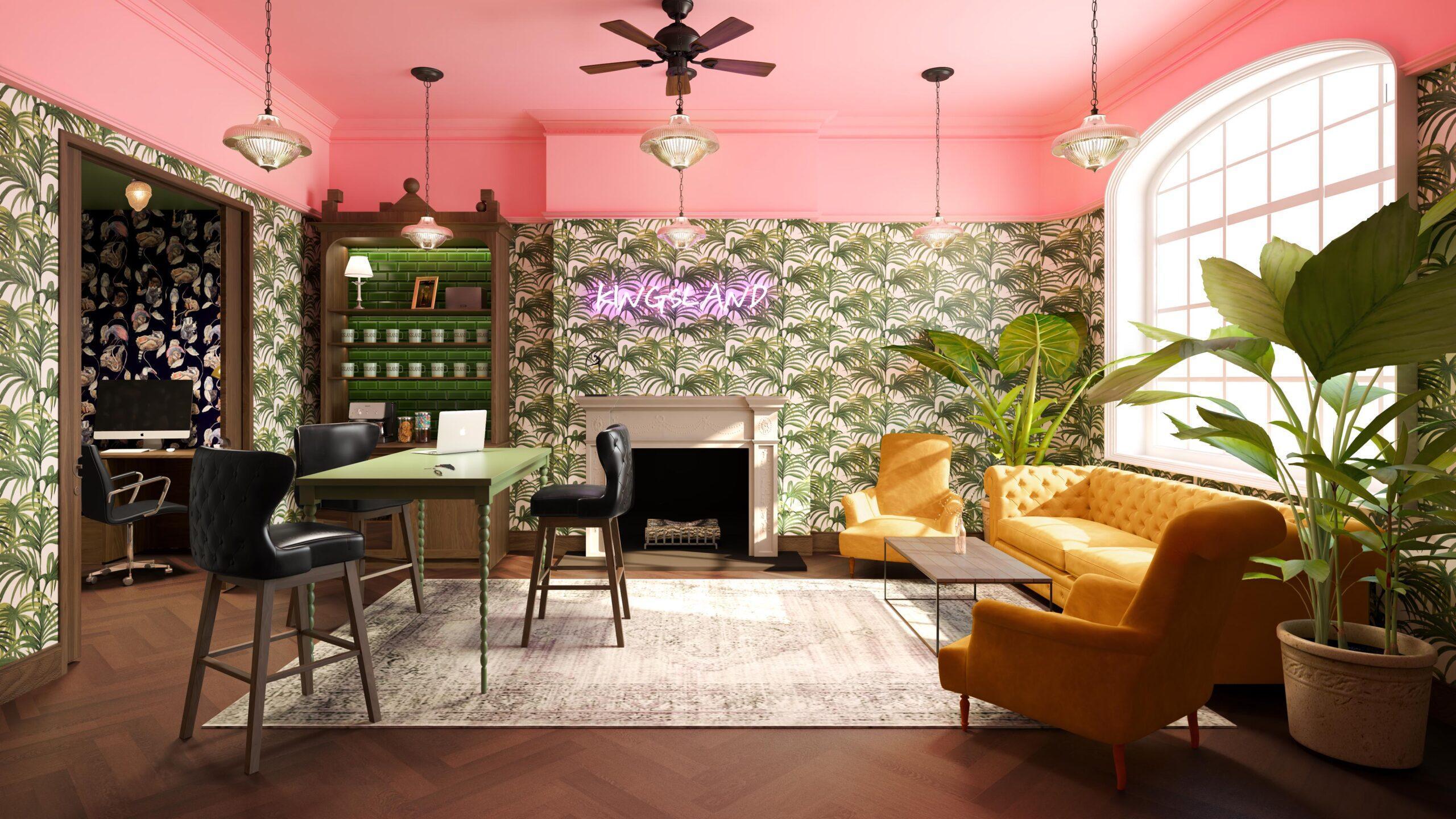 Of course, we didn’t leave out the teachers. The adults’ space features natural palm wallpaper, plush sofas and a bespoke high table and chairs.