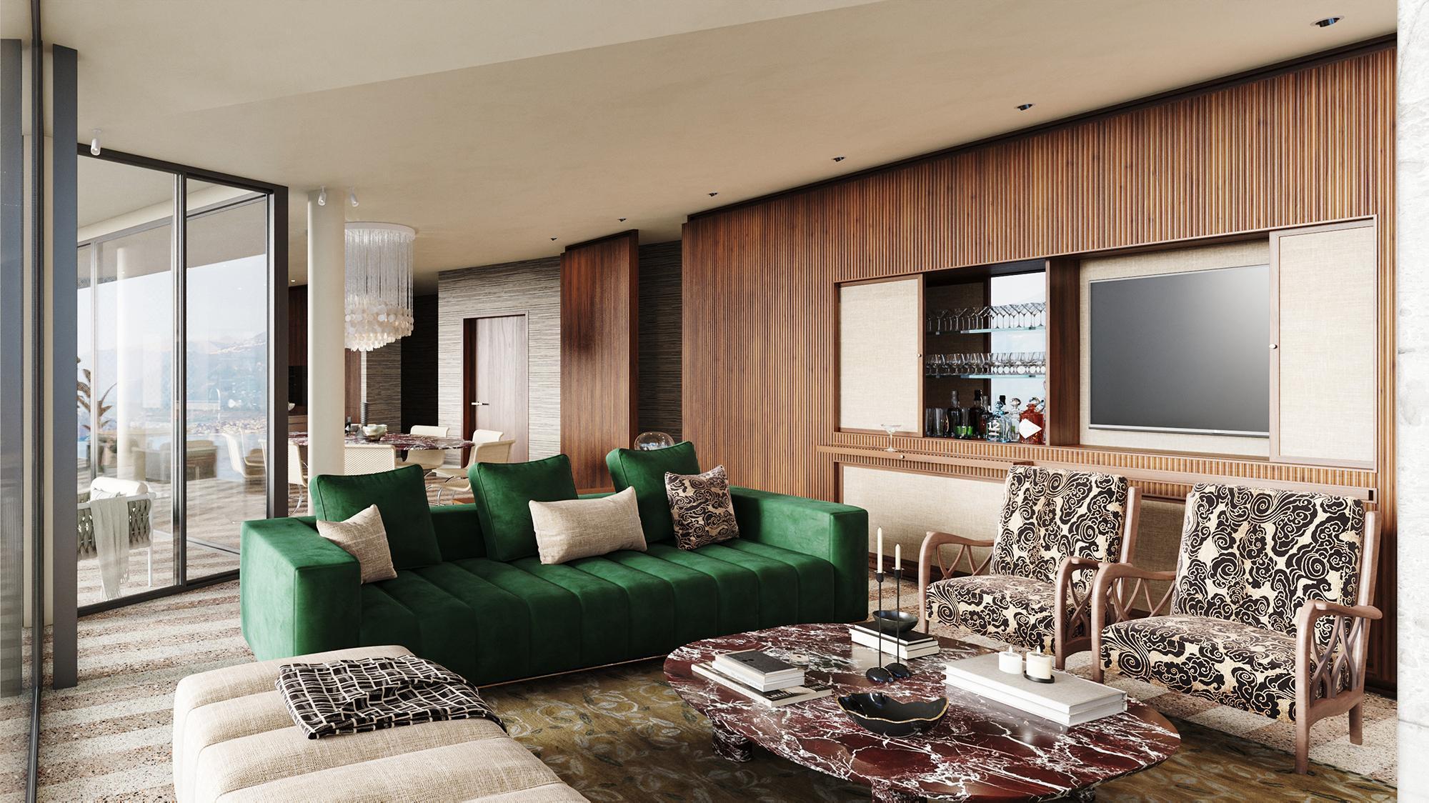 the water inspired us to play with sumptuous colours and textures to give the villa the